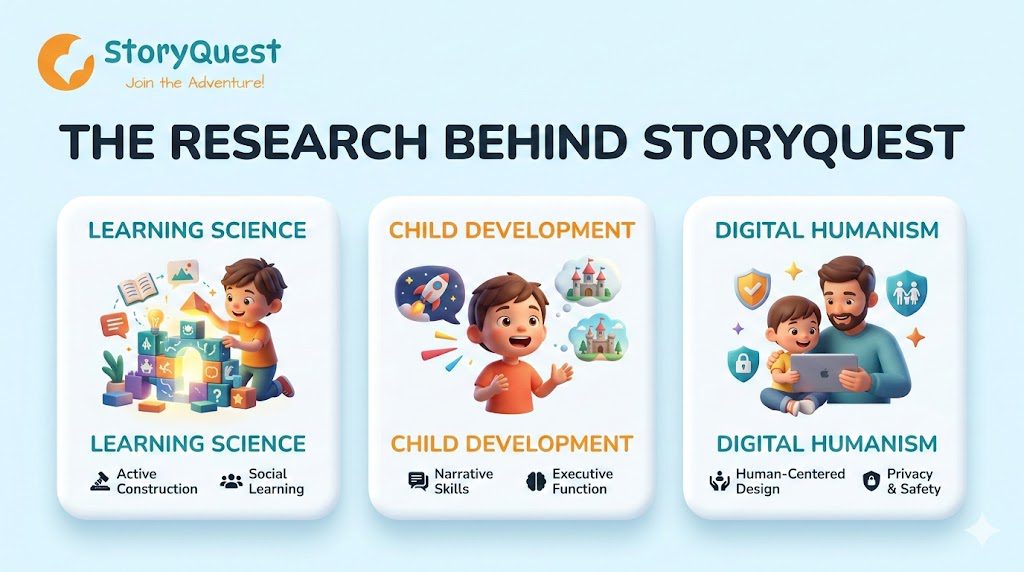 Behind every great educational tool lies solid research. StoryQuest isn’t just another appโit’s built on decades of learning science, child development research, and principles of digital humanism. Here’s how we’ve translated academic insights into a tool that truly serves children and families.