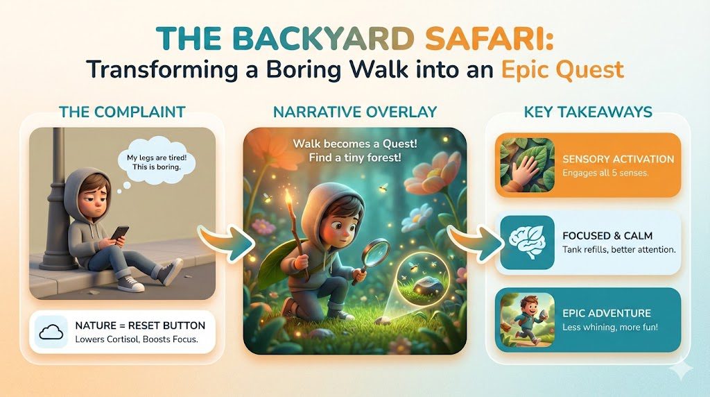 We can’t all escape to a national park this weekend. Most of us are stuck with a small backyard, a patch of balcony grass, or just a city sidewalk. And if you try to take a “nice family walk” to get some fresh air, it usually ends with the Big Three complaints: